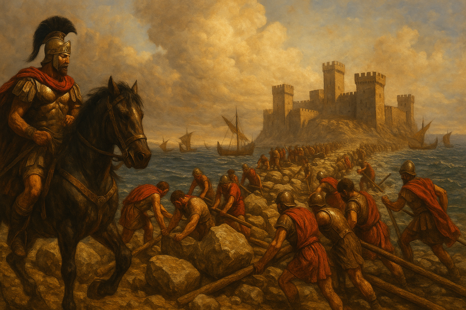 Instead of retreating, he started building a causeway— nearly 1 kilometer long, everyone mocked his decision. But Alexander knew one truth. -