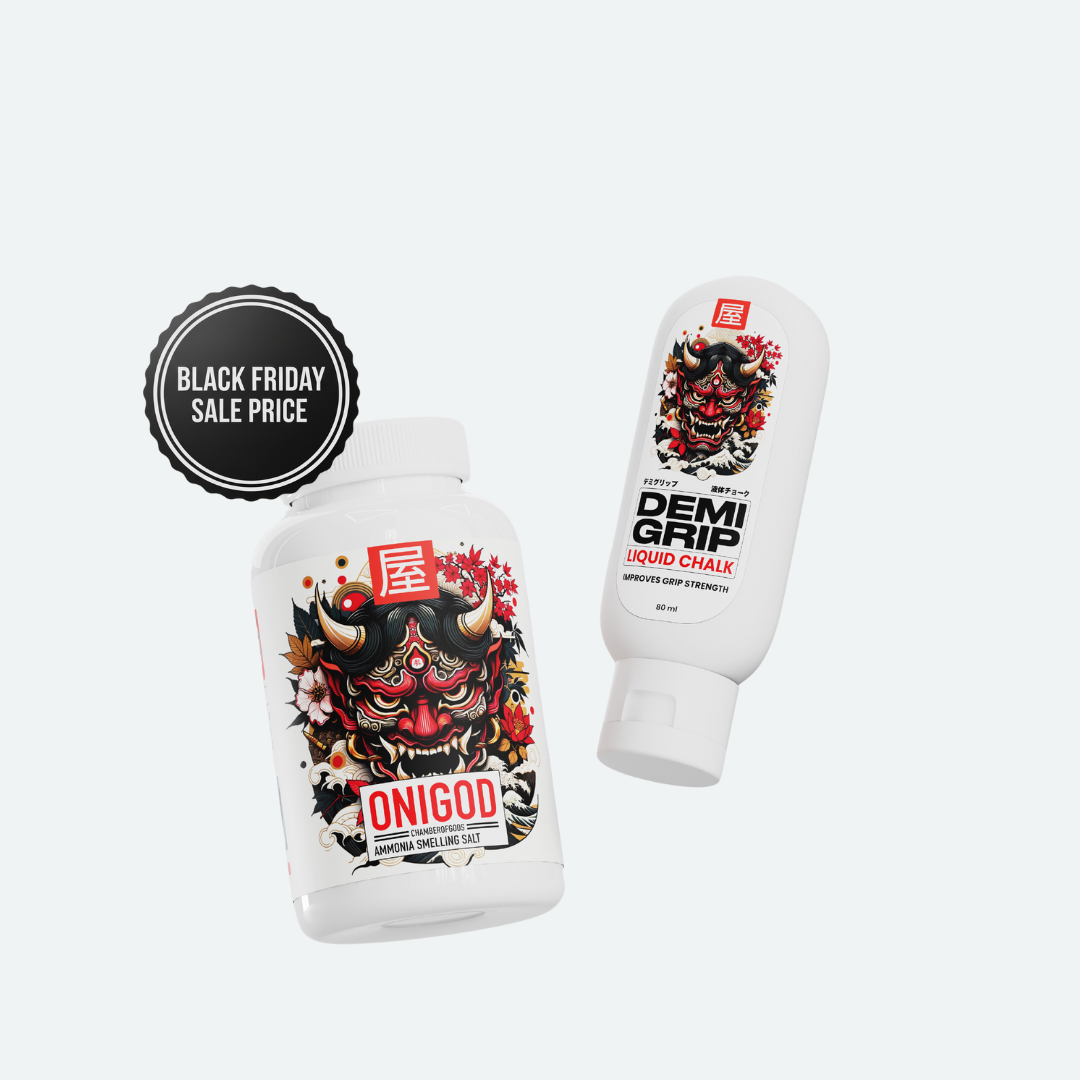 Onigod Smelling Salt & Demigrip Liquid chalk. The perfect lifting pair.