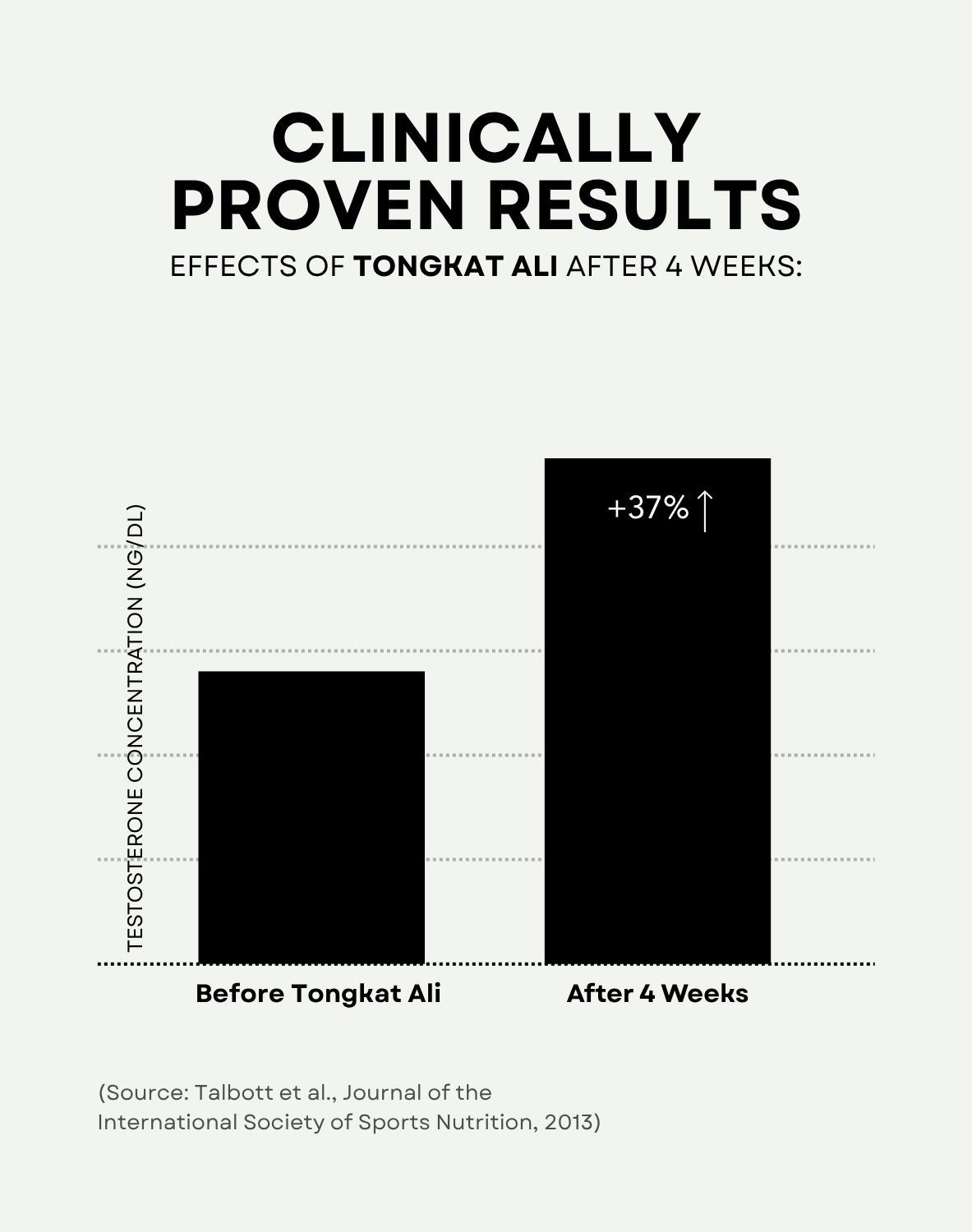 A placebo-controlled trial found that 200 mg/day of Tongkat Ali significantly increased salivary testosterone by 37% and reduced cortisol levels and stress symptoms in moderately stressed adults after 4 weeks of supplementation.